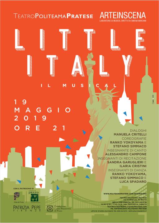 “Little Italy – Il Musical” è il nuovo spettacolo di ARTEINSCENA, il laboratorio di musical diretto da Simona Marchini, che si terrà domenica 19 maggio, alle 21.00, al Teatro Politeama Pratese, realizzato dagli allievi con la collaborazione degli insegnanti della scuola.