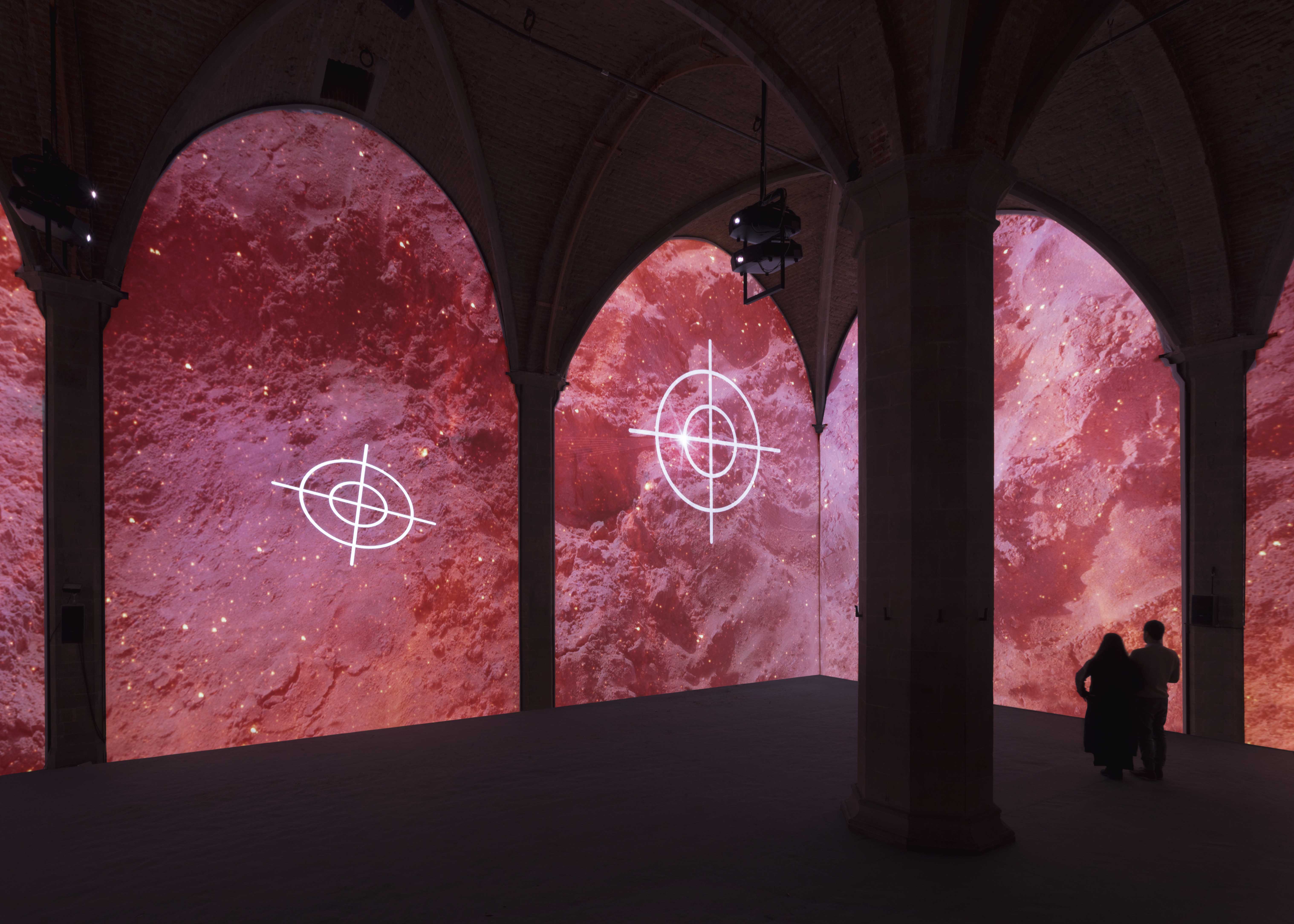 Marco (I Mark) di Grazia Toderi è un insieme di sette proiezioni video, una nuova produzione pensata appositamente per la Sala d’Armi, dove sarà visibile fino al 6 gennaio. Non casuale la scelta del numero, dai molteplici significati: fa pensare alla Genesi, ai sette continenti, ai sette metalli, ai giorni della settimana, ricordando come nello spazio e sulla terra tutto sia connesso. Un numero che mette in relazione l’uomo con l’astronomia e la cosmologia.