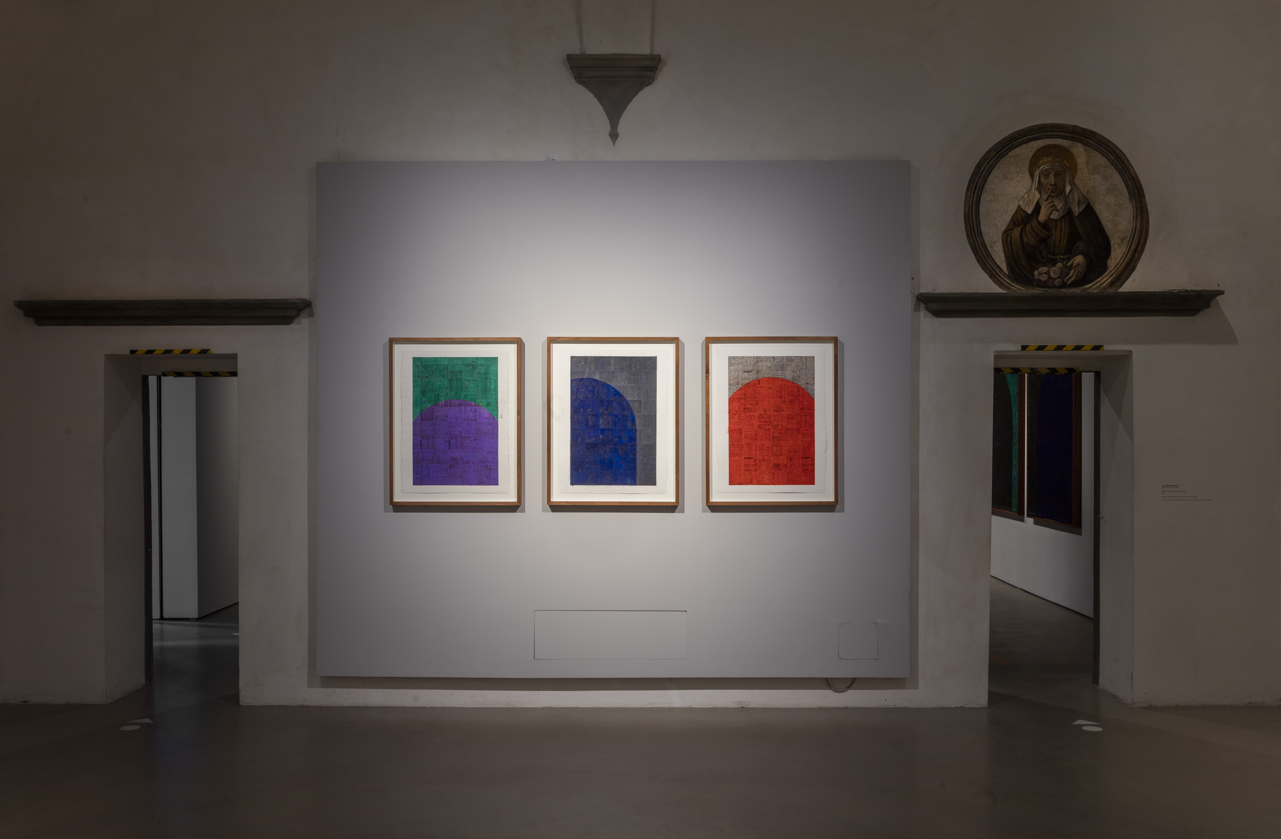 I fogli dell’agenda compongono anche la base della grande opera collocata sull’altare Modern Ancient Brown-Altar che indagano, in questo caso, il rapporto che si crea tra la griglia che emerge dalle carte e quella creata dalle linee del colore a olio con cui viene amplificata e negata. I dodici lavori Altar:work I-XII sono realizzati su una carta particolare e affrontano in modo differente la stessa forma della pala d’altare, oltre alla capacità del colore di emergere anche se ricoperto da più stratificazioni.