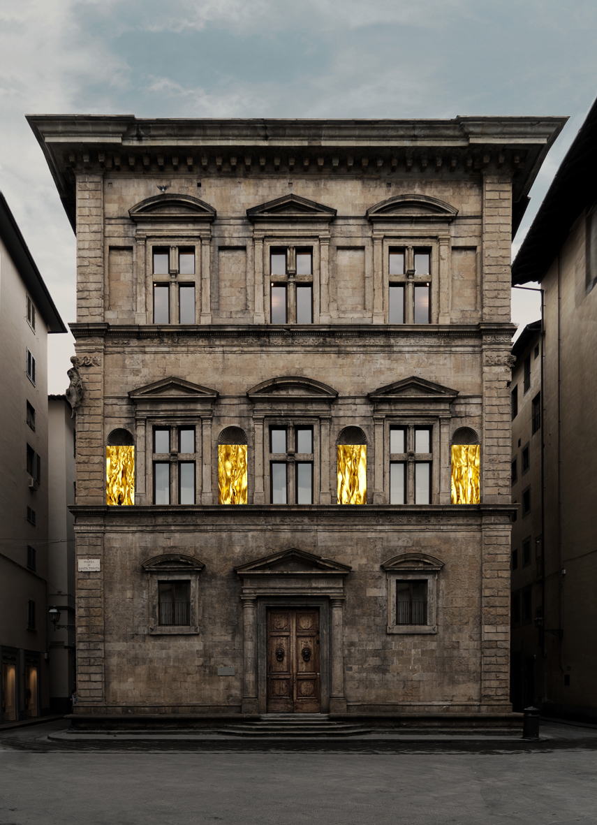 “La presenza dell’acqua e del fuoco insieme al numero delle immagini di Plessi ricorda i quattro elementi della filosofia naturale classica e rinascimentale, che a Firenze ispirarono, tra l’altro, la decorazione dell’interno della Tribuna degli Uffizi – commenta Eike Schmidt – suggerendo la concentrazione dell’intero cosmo in una singola stanza. L’oro addirittura rappresenta un elemento presente nel sistema periodico moderno (il numero 79). Tuttavia, Plessi non sembra essere tanto interessato alla qualità sostanziale, elementare, atomica, chimica e fisica dei fenomeni evocati, quanto, come Leonardo da Vinci – in particolare con le osservazioni e interpretazioni sulla viscosità dell’acqua e sull’idrodinamica contenute nel Codice Leicester – al loro movimento. Un movimento che si oppone al nostro sul terreno e ci impone una sosta di riflessione: nei prossimi mesi, chi passeggerà lungo via Tornabuoni potrà fermarsi ad ammirare l’inaspettata animazione della facciata di Palazzo Bartolini Salimbeni, e farsi coinvolgere nella contemplazione catartica delle quattro immagini in successione”.