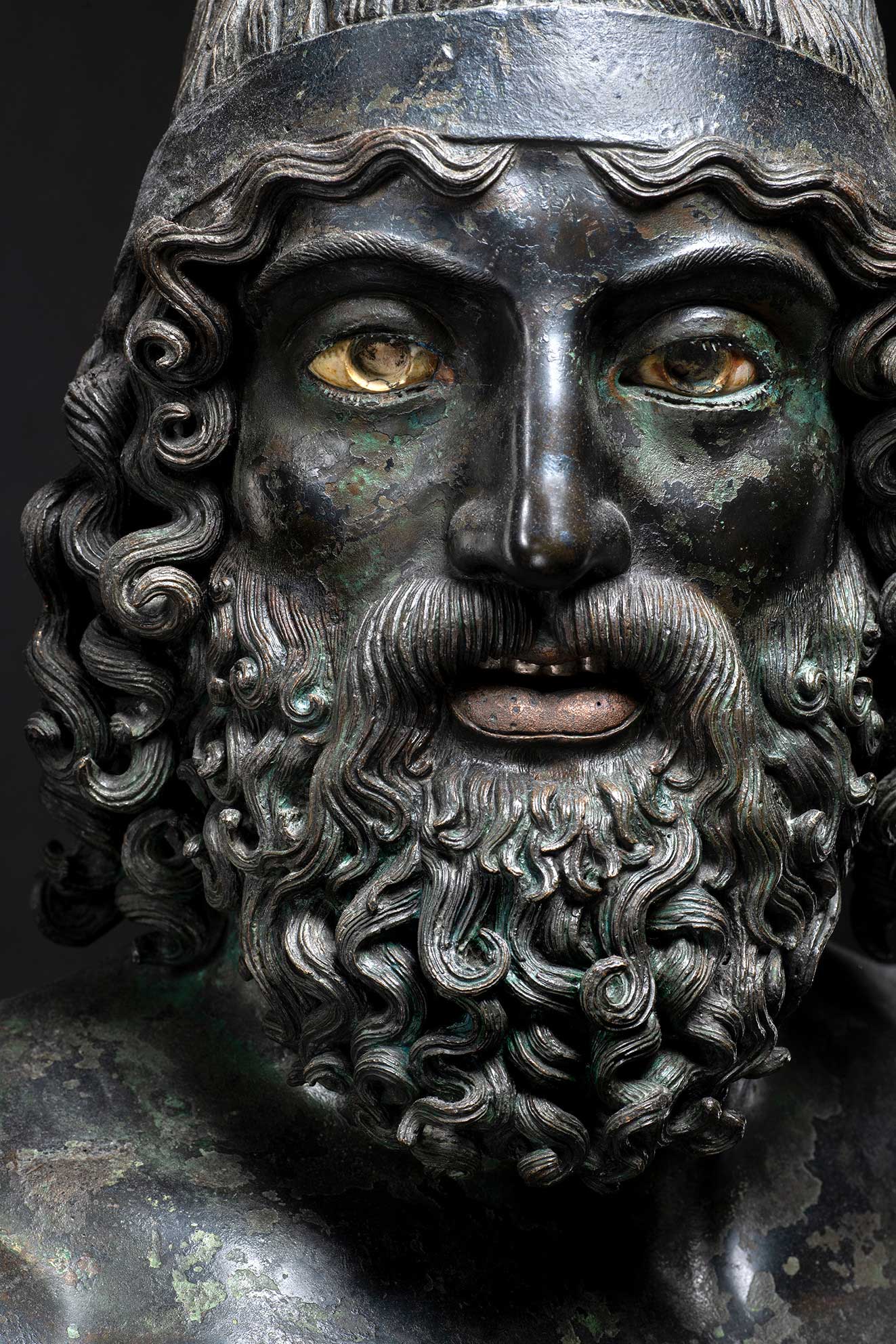 Le due magnifiche statue in bronzo furono scoperte il 16 agosto 1972, durante una battuta di pesca subacquea nei pressi di Riace Marina, a 8 metri di profondità. Dopo un avventuroso recupero, i due guerrieri – due figure maschili nude, convenzionalmente chiamate A e B, oppure il “Giovane” e il “Vecchio”, di dimensioni leggermente superiori al normale – furono trasportati al Museo Nazionale di Reggio Calabria, dove vennero sottoposte a un primo intervento di restauro, affidato successivamente, agli inizi del 1975, al Laboratorio della Soprintendenza Archeologica della Toscana. I Bronzi furono esposti per la prima volta al pubblico nel dicembre del 1980, a Firenze, nel Museo Archeologico, e poi, nel 1981, al palazzo del Quirinale, a Roma. Un evento di grande risonanza mediatica, che richiamò folle di visitatori da ogni dove. Gli studi hanno consentito di stabilire che le due opere sono riconducibili al secolo d’oro dell’arte greca, databili intorno alla metà del V sec. a.C., esempio di una sapiente e fine tecnica bronzistica, forse realizzate da due maestri diversi ma comunque per una destinazione pubblica.