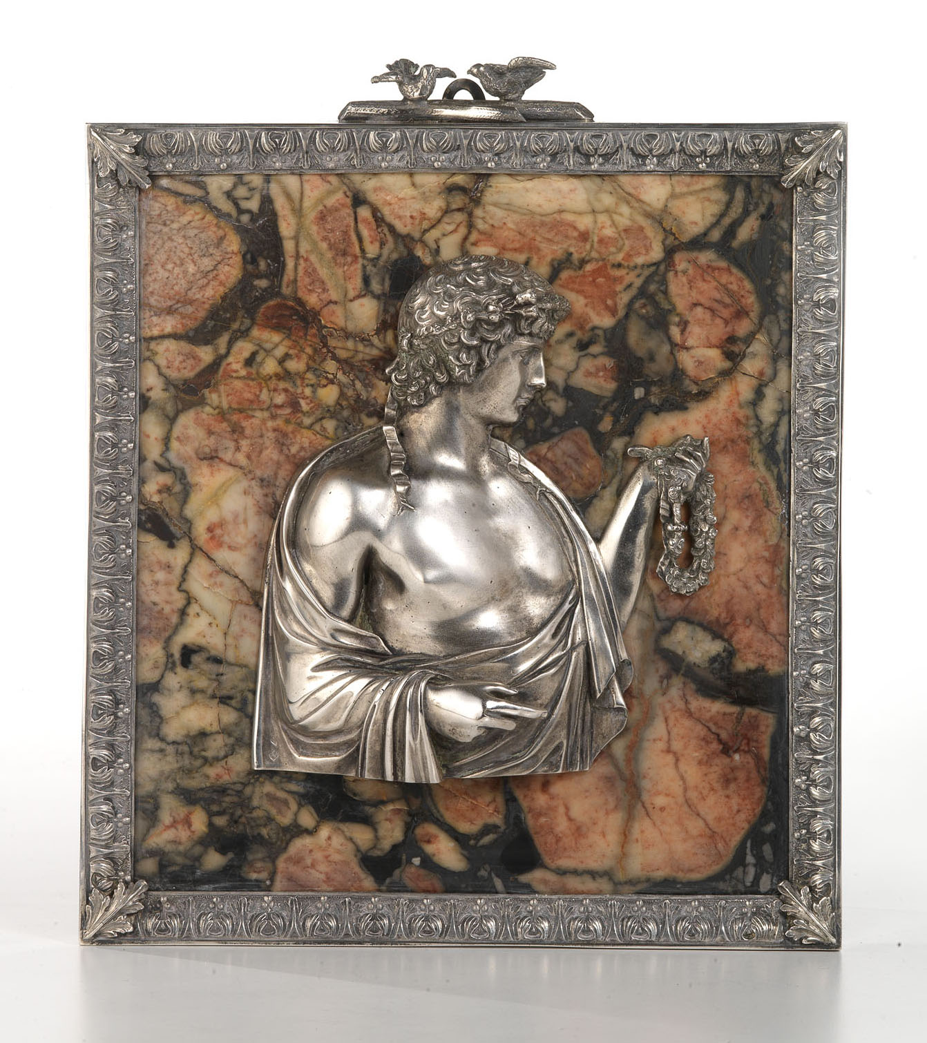Estremamente raffinato è il gruppo in bisquit bianco della manifattura di Sévres, del XIX secolo, raffigurante La nascita di Bacco (stima 7.500/8.500 euro) come il bel gruppo in bisquit attribuito a Filippo Tagliolini (1745 – 1809), raffigurante Il trionfo di Bacco e Sileno (stima 10.000/20.000 euro).