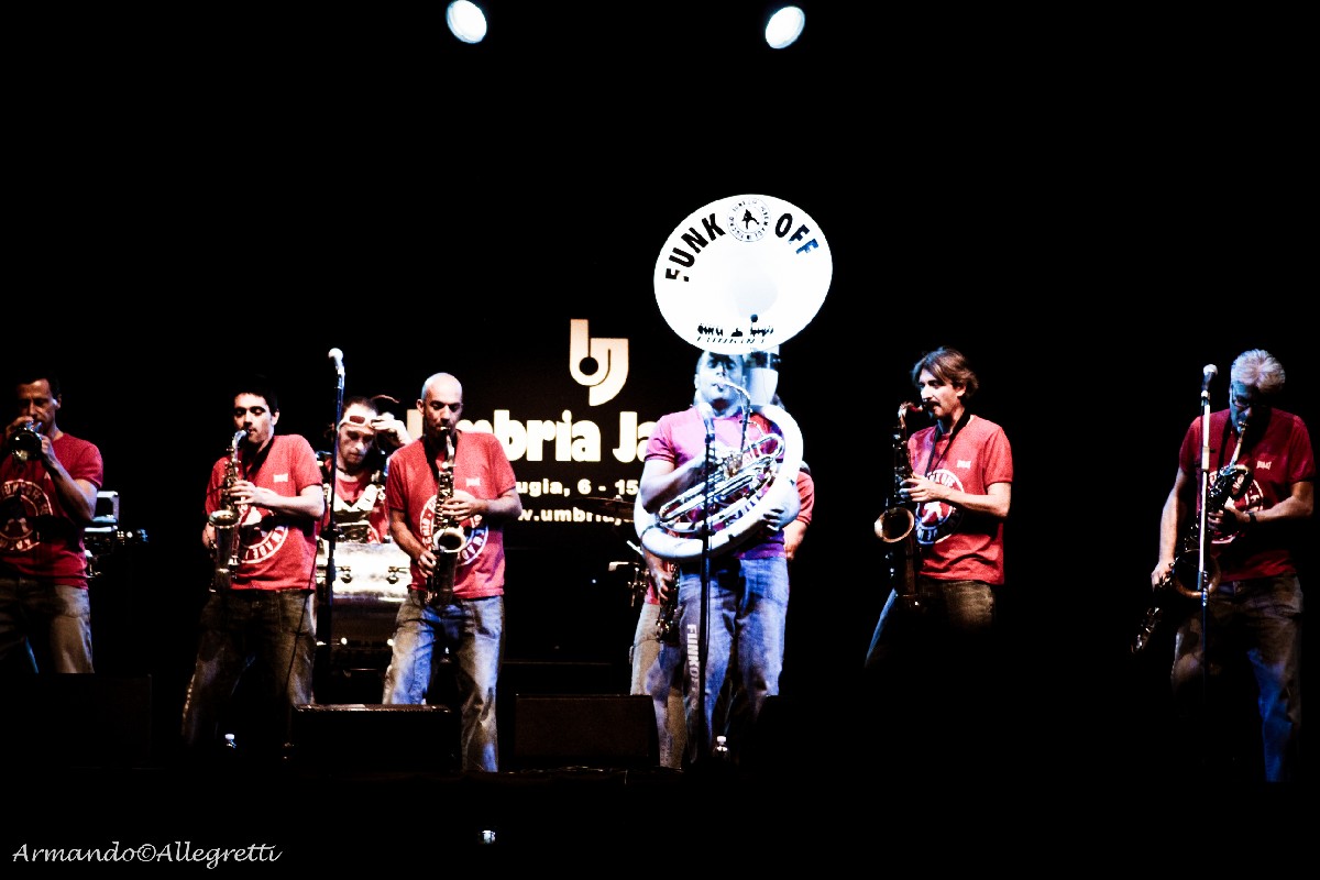 E proprio dei Funk Off si parlerà in questa serata, della loro storia, di come si sono contraddistinti stravolgendo il tradizionale concetto di marching band. Una band che ha avuto un successo straordinario, che è riuscita a coinvolgere in maniera contagiosa il pubblico grazie alla sua capacità di comunicare il proprio entusiasmo per la musica. Nata nel 1998 da uno scatenato gruppo di 15 elementi, la band guidata da Cecchini ha messo su un progetto dove lo show e l’energia si fonde con la musica jazz della swing-era, del funky e del soul. Nei loro brani, tutti originali, scritti e arrangiati dallo stesso Cecchini, ritmi e sonorità funk, dispari, latine, rock, jazz si mescolano in strutture armoniche e formali in cui lo spazio lasciato all’improvvisazione è spesso inserito in contesti compositivi di ricerca, senza preclusioni di stile e sonorità.