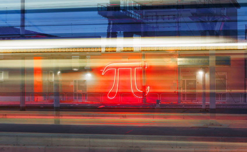 Un grande π luminoso campeggia nella stazione di Santa Lucia, a Venezia. È THE IRRATIONAL CITY 2.0 di Paolo Cesaretti e Antonella Dedini, un’installazione alta cinque metri, appena collocata all’ingresso della città e visibile fino alla fine di novembre 2013. Si tratta di un’opera site-specific che interviene all’interno del perimetro della stazione, inteso come punto di passaggio fra la terra ferma e la città lagunare.
