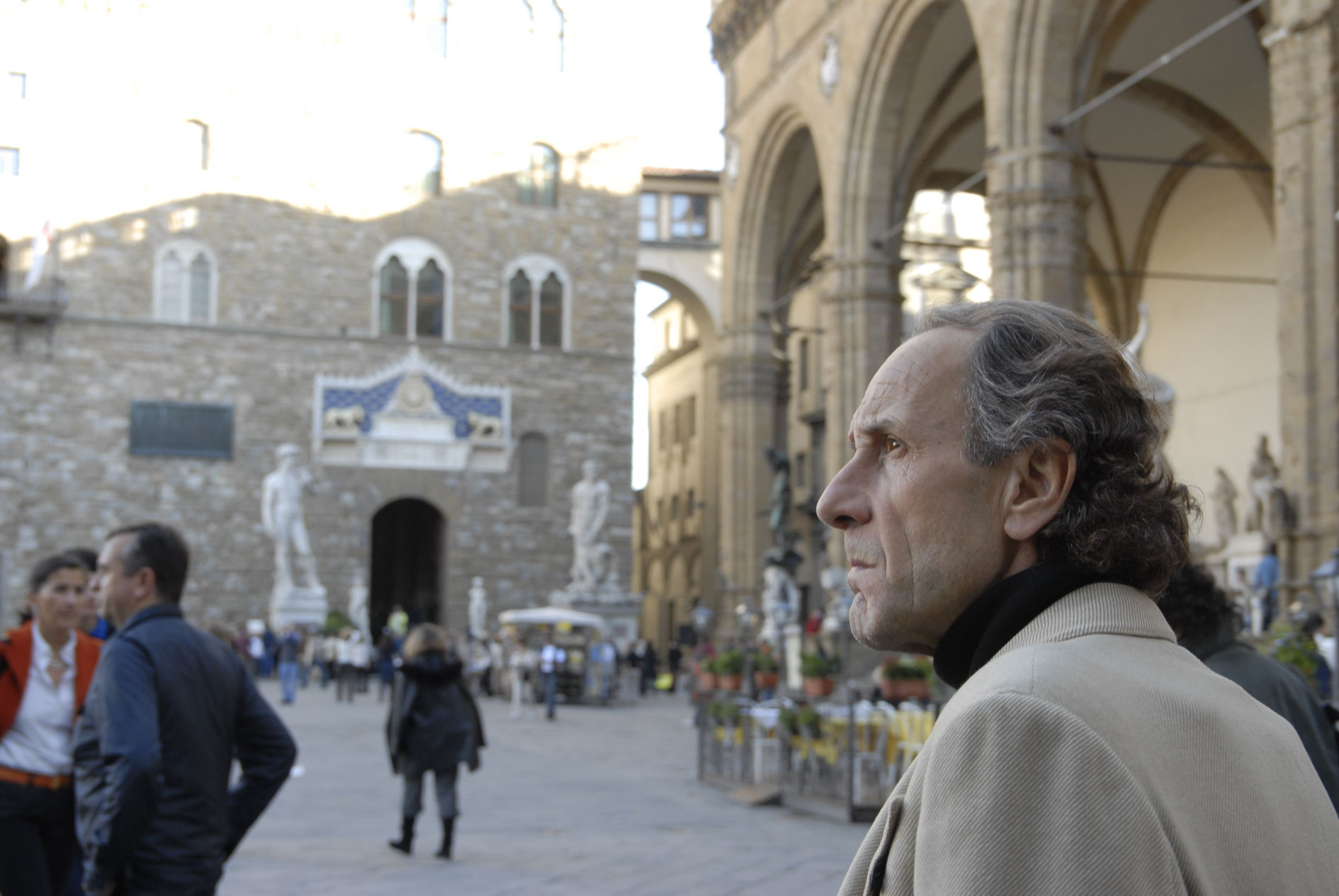 Presente! LatoA-LatoB, consiste in una nuova intervista realizzata in occasione di questa mostra fiorentina. Si tratta quindi di un progetto site specific, un’intervista realizzata a Firenze camminando per le strade affollate del centro storico, fermandosi nel silenzio di un chiostro o di una navata, tornando sul posto davanti a opere d’arte del passato, conversando convivialmente in un bar. L’intervista è pubblicata in un formato inconsueto, Cucchi infatti ha optato per un vinile – medium ormai anacronistico. Sarà possibile ascoltare il LatoA alla Galleria Alessandro Bagnai mentre il LatoB alla Galleria Poggiali e Forconi.