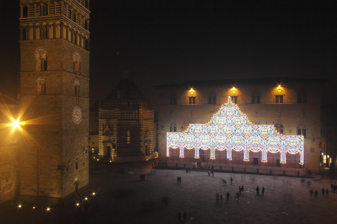 LUMINARTE. Pistoia Christmas in light, vero esempio di marketing urbano a tutto tondo, coniuga arte, cultura e commercio con la partecipazione di tutti gli esercizi commerciali cittadini. Attorno al progetto si sono unite diverse forze economiche, tutte le maggiori realtà amministrative del territorio e tanti cittadini che con entusiasmo hanno creduto nella sua realizzazione e hanno già deciso di ripetere l’iniziativa nei prossimi anni, proponendo ogni volta un progetto di un artista diverso.