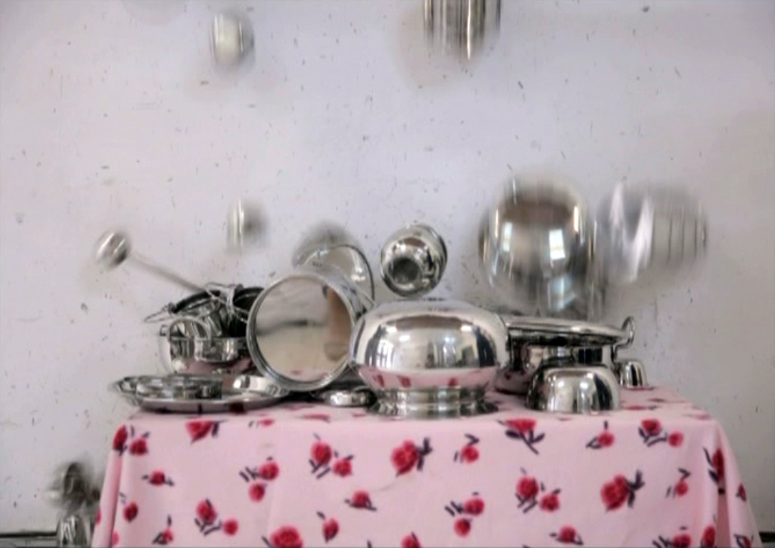 Subodh Gupta (New Delhi, 1964) è un artista che impiega molte delle tecniche originali del concettualista francese Marcel Duchamp, elevando il ready-made a oggetto d’arte. Il suo lavoro è caratterizzato dalla presenza di materiali modesti di uso domestico come i mestoli, le pentole e tutta una serie di oggetti in acciao inox che, grazie alla loro lucentezza, diventano preziosi. In Still life juggler (2008) Gupta darà vita e voce a questi oggetti, che pioveranno dall’alto su una tavola colorata.