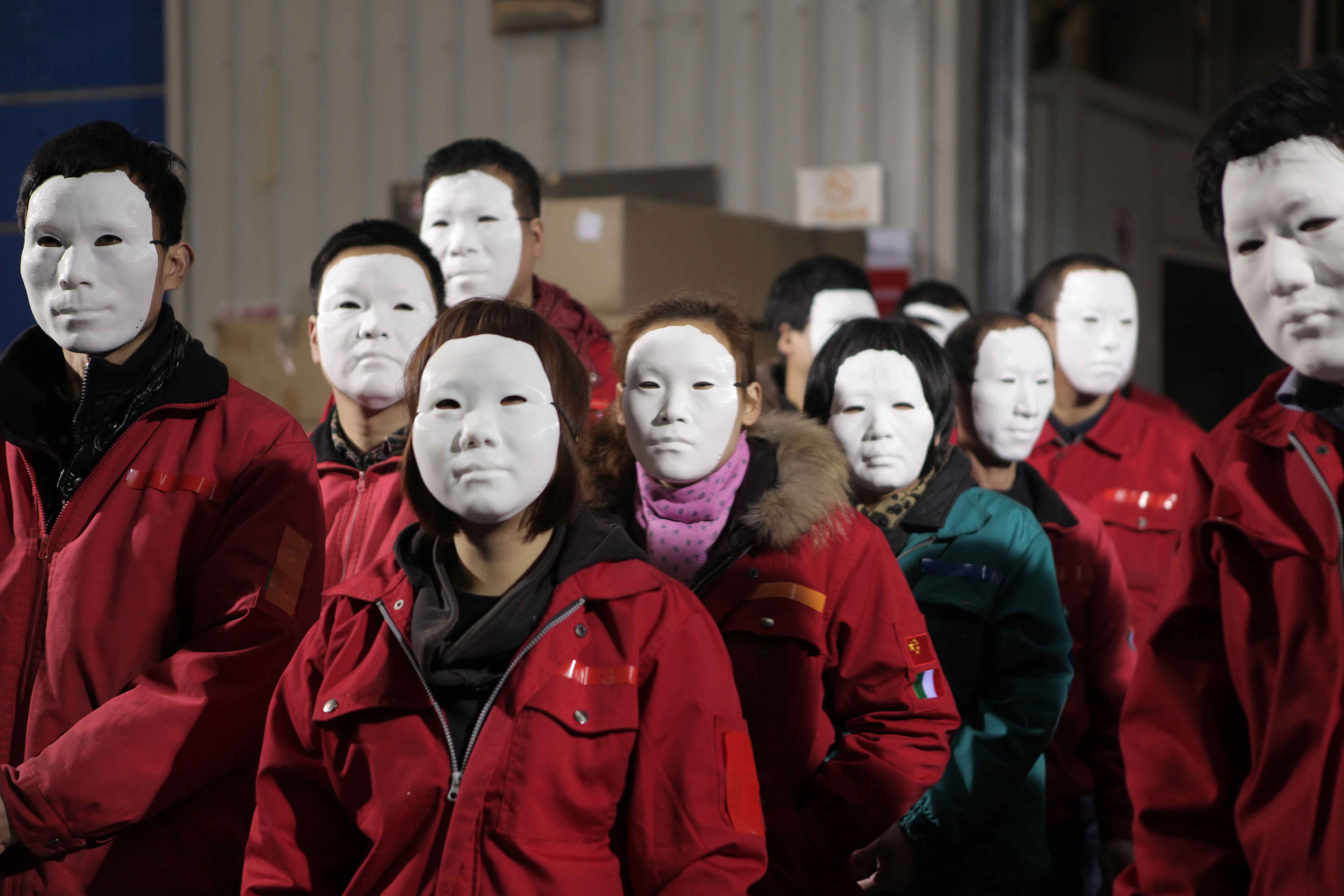 Disguise si basa su un approccio lacaniano rispetto alla decostruzione dell’identità e, al contempo, innesca un processo per risvegliare la coscienza dell’individuo all’interno della collettività. La maschera, come esatto duplicato del volto dei dipendenti, drammatizza le loro emozioni fino a un’estrema ostentazione. D’altro canto la coreografia a rallentatore dei movimenti meccanici che essi eseguono alla catena di montaggio, che vediamo nel video, rivela un altro aspetto del lavoro. Cos’è più reale, il ruolo che assumono o le loro identità? Qual è la reazione che questo video può far emergere nei lavoratori coinvolti al momento della visione della propria performance? Niente è certo durante la produzione e tutte le previsioni possono trasformarsi in nuove possibilità.