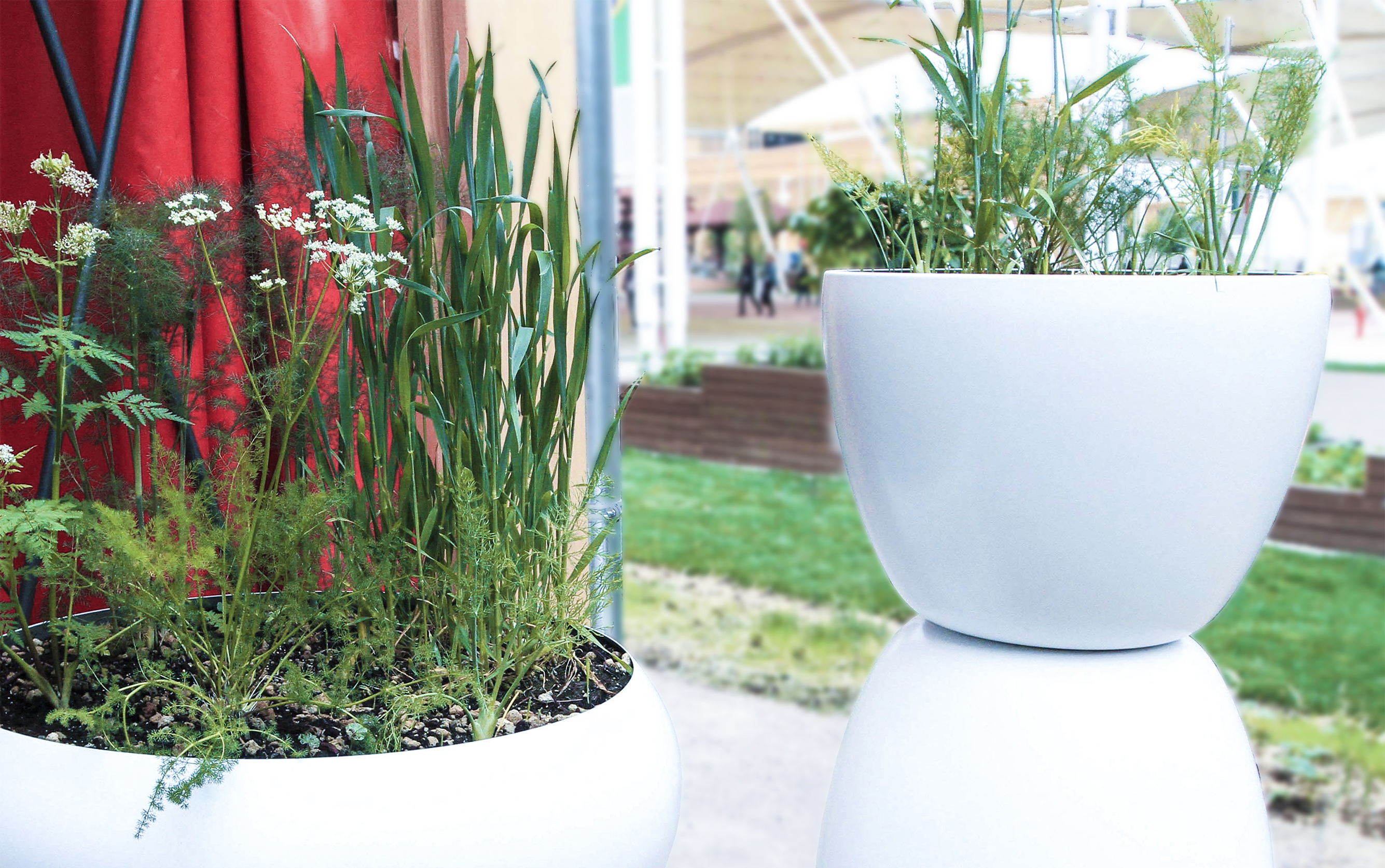 L’installazione si presenta inizialmente come una serie di sculture modulari, ispirate alla celebre Colonna senza fine dello scultore Costantin Brancusi, che parte dall’impiego di tre importanti prodotti Elica (Edith, Seashell, Audrey). In una seconda fase, le scocche delle cappe da cucina sovrapposte formano delle colonne utilizzate come vasi per la coltivazione di piante alimentari. Le cappe da cucina saranno dunque le protagoniste di una serie continua di “passaggi di stato”, da moduli metallici a sculture che diventano “vasi” capaci di ospitare e accogliere la nascita di una nuova vita. L’artista collocherà al loro interno alcune piante, scelte in collaborazione con l’Arch. Phd Melania Bugiani, impiegate come base per alimenti quali orzo avena, mandorla, finocchio, anice. Sono tutte piante facilmente coltivabili, capaci di legarsi ai temi da sempre vicini a Save the Children e, più in generale, ai temi dell’EXPO 2015 Nutrire il Pianeta, Energia per la Vita.