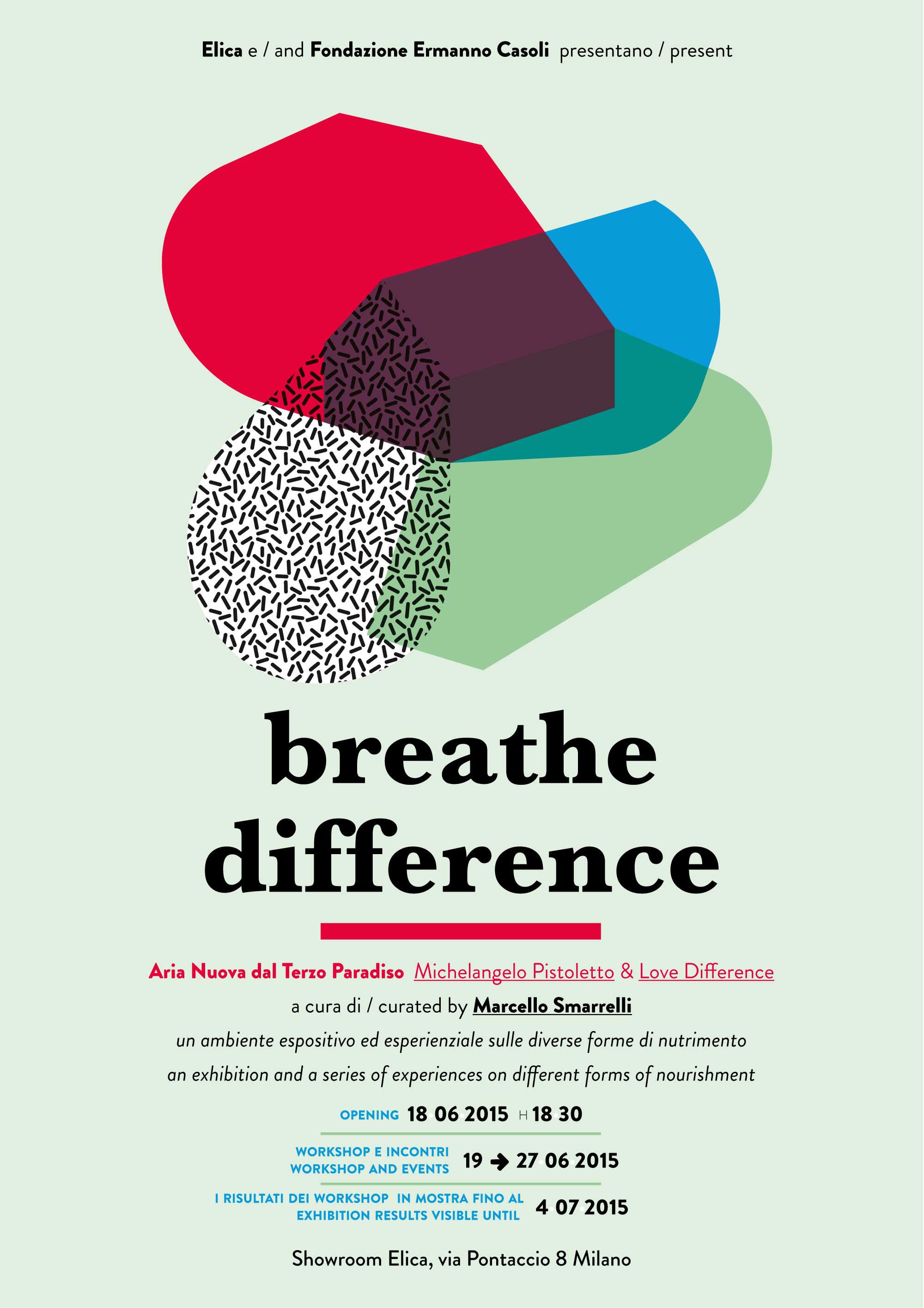 L’opera di Pistoletto introduce idealmente i temi che saranno trattati nel ricco programma di workshop e incontri che, dal 19 al 27 giugno, seguiranno l’opening. Breathe Difference diverse forme di nutrimento indaga il rapporto tra genere umano, ambiente e sfruttamento delle risorse del pianeta, argomenti al centro dell’EXPO. Le attività dei vari laboratori, coordinate da Love Difference, vedranno la collaborazione di diversi protagonisti, tra cui artway of thinking, Istituto Hoffman, Ludosofici, Osteria della Villetta, snark – space making, Globarch Open Quadra, Xlam Dolomiti e si concluderanno con un’opera collettiva frutto delle giornate di workshop, che sarà visitabile dal 29 giugno al 4 luglio, dalle 10.00 alle 22.00.