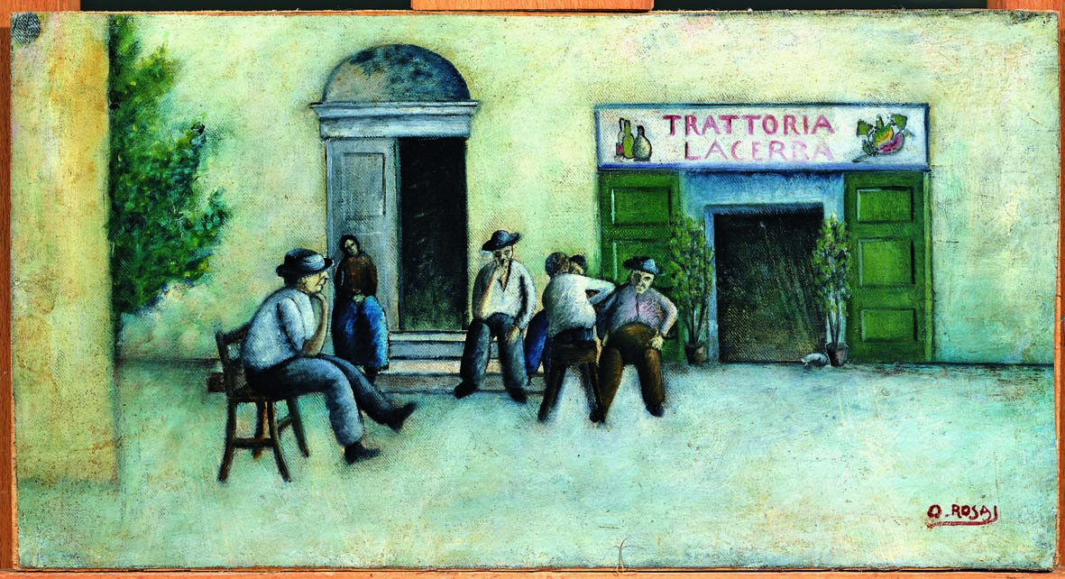 Nella prima sono contemplate le raccolte di cinque importanti istituzioni fiorentine presenti con opere di differenti tipologie, provenienti da altrettanti differenziate vicende collezionistiche. Le sale più vaste accolgono la raccolta di origine bancaria del Monte dei Paschi di Siena, che ospita nelle proprie sedi – soprattutto tra Firenze e Siena – fondi oro e dipinti dei maggiori rappresentanti dell’arte senese dal XIV al XIX secolo, ma anche un vasto nucleo di dipinti novecenteschi, arricchitosi soprattutto in seguito all’incorporazione della collezione di Banca Toscana. Se di Felice Carena è la celebre grande tela che raffigura una lezione accademica di nudo – nella quale sono forse ritratti gli stessi colleghi del pittore all’Accademia di Belle Arti di Firenze –, di Rosai sono opere fondamentali come I giocatori di Toppa, esempio di quella critica alle convenzioni borghesi che si esprimeva attraverso lo scelta del popolo come soggetto principale della propria pittura e di una stile scarno e antiaccademico a sottolinearne il carattere allo stesso tempo toscanissimo e universale. Di quel candidissimo pittore delle essenze che fu Donghi le Donne per le scale, esempio di quel “realismo magico” che caratterizza molta pittura italiana tra le due guerre, mentre di Severini uno dei pannelli dipinti nel 1928 per l’abitazione parigina del mercante Léonce Rosenberg, incentrato sul tema del circo e delle maschere italiane caro al pittore in questi anni. E poi anche nature morte (un singolare De Pisis) e paesaggi (un raro Morandi) offrono dimostrazione di una coerenza di scelte collezionistiche, da cui esula inaspettatamente un’opera giovanile di Burri, una tela realizzata con frammenti di stoffe.