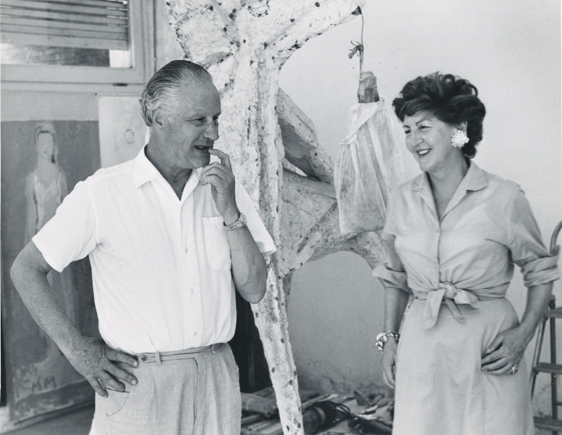 Mercedes “Marina” Pedrazzini nasce a Locarno da famiglia borghese. Dotata di un carattere forte e di spirito d’avventura, lascia la svizzera e fugge a Milano, dove lavora nel mondo della moda. Nel 1938 conosce Marino e se ne innamora, i due si sposano prima della fine dell’anno. Da allora sono inseparabili e condividono attimo per attimo una vita intensa, trascorsa tra Milano e la Svizzera, con frequenti viaggi in Europa e in America e lunghe soste alla Germinaia, l’amata residenza a Forte dei Marmi. Dopo la scomparsa dell’artista, Marina continua a dedicare inesauribili energie alla tutela e alla valorizzazione della sua opera.