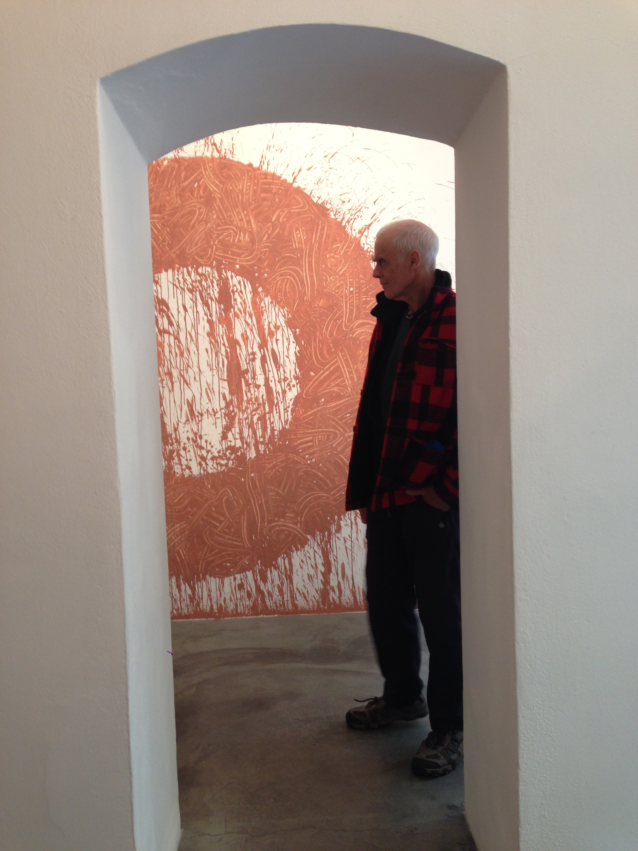 A R N O A V O N è il nuovo intervento di Richard Long costituito da due “mud works” che caratterizzano in maniera inedita due pareti specifiche del contenitore architettonico: un cerchio e un semi cerchio creati applicando il fango direttamente sul muro attraverso il solo uso delle mani. Il fango è uno degli elementi naturali costantemente presenti nell’opera di Long, ed è da lui ritenuto un ponte naturale tra l’acqua e la roccia. La fluidità di questo medium gli permette, così, di disegnare forme geometriche attraverso gesti che distribuiscono il fango lungo le pareti dello spazio. È una pittura spontanea, che esplora le possibilità del disporsi della materia, ma anche che ne rivela l’energia intrinseca. Proprio come l’acqua di un fiume che fluisce verso il mare, cosi il fango fluisce dalle pareti verso il pavimento. Questa mostra è un omaggio all’Arno, il fiume di Firenze, che riporta nella mente dell’artista all’ Avon, il fiume che passa per la sua città natale, Bristol, e con il cui fango l’artista ha lavorato moltissimo. L’uso di materiali locali è infatti una costante della pratica artistica di Long che lo avvicina ancor più ai luoghi nei quali crea ed espone il suo lavoro. Come spiega lo stesso Long: “Ho sempre un’idea precisa della forma complessiva del lavoro, che è equilibrata dalla spontaneità dell’esecuzione. La velocità del gesto è importante perché è ciò che crea la traccia del getto, che mostra l’acquosità del fango, e l’acqua è il soggetto e l’oggetto principale di queste opere, mostrandone la natura. Sono interessato a questa tipicità della varietà cosmica: ogni pietra è diversa, come lo è ogni impronta delle dita, ogni nuvola, ogni getto, ogni camminata; e non si può entrare mai nello stesso fiume due volte”. L’artista riporta quindi nello spazio espositivo l’esperienza vissuta nel paesaggio, ricostruendo la sua relazione costante con la natura. Questa interazione è ricreata attraverso la gestualità del segno, proprio come avveniva nella pittura parietale preistorica, ed è testimonianza dell’aderenza radicale ai mezzi naturali e alla capacità di lavorare con il solo corpo umano.